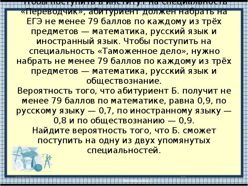 Для того чтобы поступить на