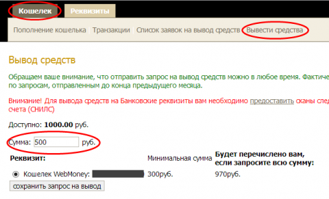 Код для вывода средств