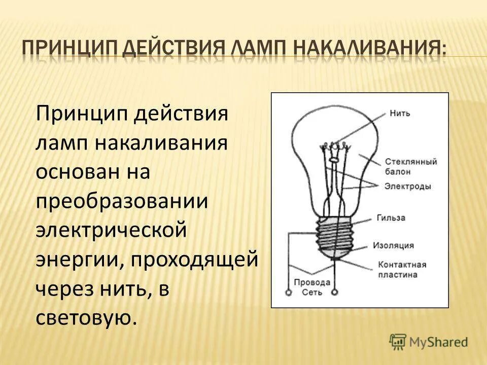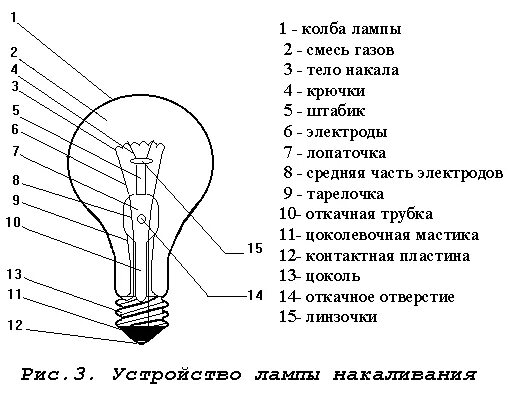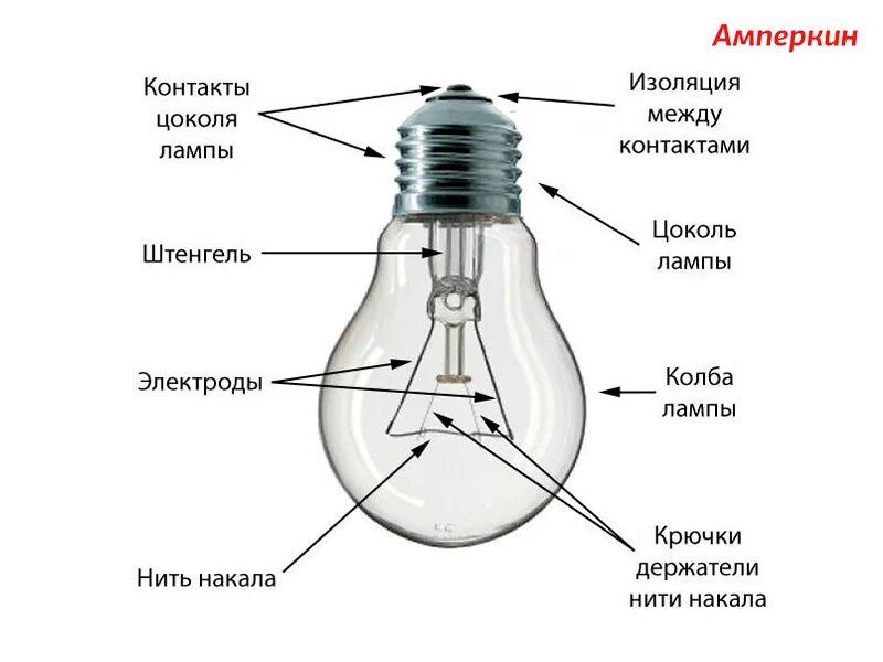 Соотнесите элементы лампы накаливания
